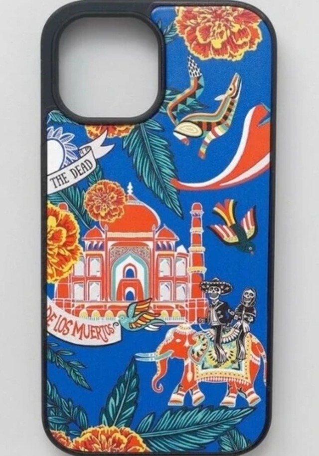 【旅するカラベラシリーズ】メキシコの有名なカラベラが、メキシコ、モロッコ、インド、日本を旅している様子をイメージしました。 対応機種:iPhone13/14/15 ※こちらの商品は1点1点職人による手作りとなります。その為、形や色合いなど若干異なる場合がございます。あらかじめご了承ください。 サイズ・容量 本体サイズ:縦15.3cm 横7.8cm 厚み1.1cm 外装サイズ:縦18.5cm 横9.5cm 厚み1.7cm 規格 ■生産地:中国 ■素材・成分:TPU(熱可塑性ポリウレタン) 合成皮革
